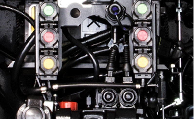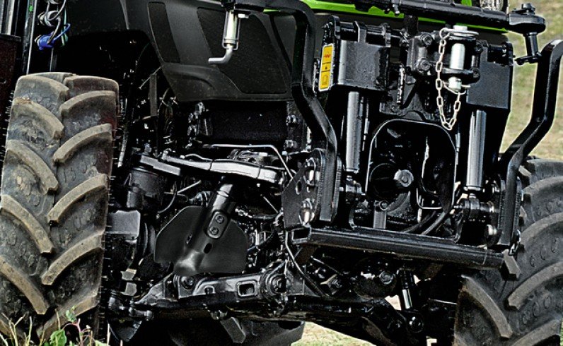 From vineyards to orchards, from tilling the land to tending and harvesting crops, and from municipal winter service to road and site maintenance – versatility and adaptability is a strength of the new DEUTZ-FAHR specialist tractors. With 2,600 kg lift capacity at the rear (model 5DF: max. 2,800 kg) and 1,500 kg at the front, all possible combinations of equipment can be easily moved. The rear power lift can be electronically controlled if desired. The standard pump capacity is 54 l/min for three control valves at the rear. An optional 64 l/min tandem pump is available for the parallel operation of a rear power lift and up to five control valves at the front and rear. The 5DF Ecoline models are fitted with a 42 l/min pump and three control valves at the rear. In order to ensure that the hydraulics fully match your operating profile, DEUTZ-FAHR offers five defined hydraulic packages that range from basic to high-tech. External operation of the rear lift from the wing makes attaching work equipment a safe and straightforward procedure. |
