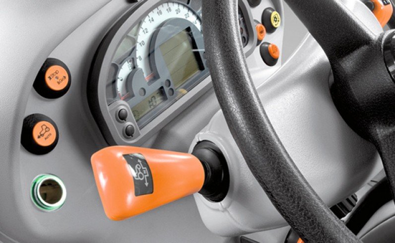 The transmission systems of the new DEUTZ-FAHR specialist tractors have also been specially developed to meet the high demands of modern agricultural businesses. Efficiency, versatility and equipment flexibility were the most important criteria here. The three-stage PowerShift transmission with five gears is unique in this tractor class. It provides up to 45 forward and 45 reverse gears. For greater driver comfort, gear changes can be carried out at the push of a button on the gear shift lever without any need to depress the clutch. The Stop&Go system for convenient starting and stopping without using the clutch pedal comes as standard in all models featuring PowerShuttle. Choose the transmission system that provides a perfect fit for your work profile and comfort needs. For the 5DS, 5DV and 5DF models, a mechanical five-speed transmission is available with up to 30 forward and 15 reverse gears. The 5DF Ecoline models are fitted with this system as standard. A speed of 40 km/h ECO can be achieved with all models using any tyres. The ‘overspeed’ concept vastly reduces fuel consumption and noise levels during transport operations. Maximum efficiency and optimal driver comfort are the result. |