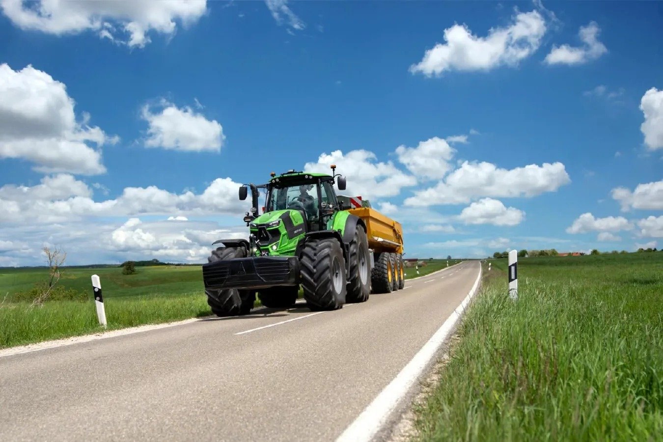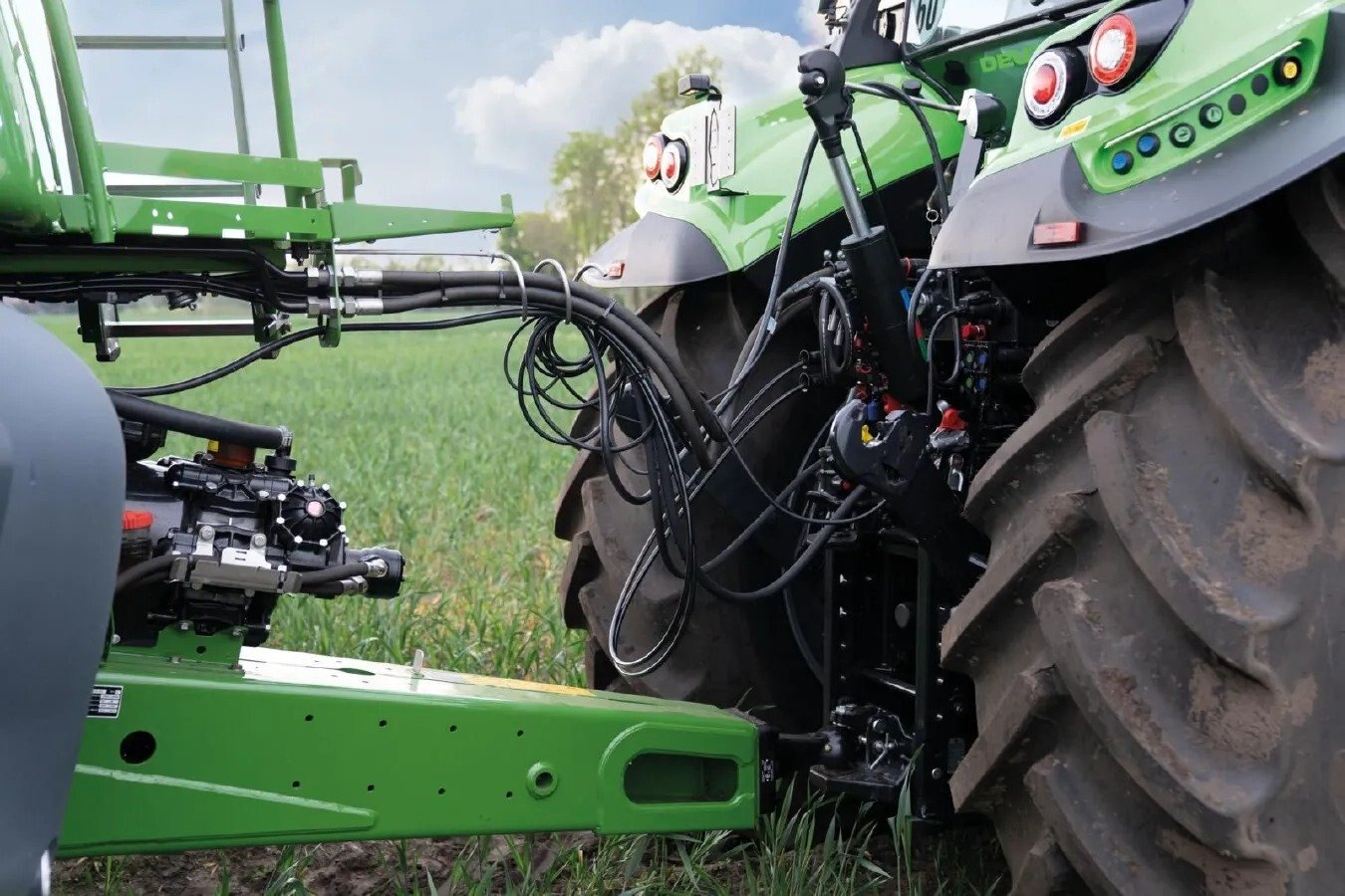 BrakesFOR SUPERLATIVE SAFETYIn order to be productive, the operator must have maximum control of the vehicle, both in the field and on the road, whether at high speeds or on bumpy terrain and with the heaviest equipment. While working on the new 7 Series, in any conditions, you can feel the machinery's high level of safety. The new heavy-duty front axle and the braking system on the 7 Series are also unique in this tractor class. The intelligent and adaptive suspension system gives the new 7 Series maximum stability – both during heavy towing operations and when driving large loads. The innovative suspension concept stabilizes the tractor during all transport operations and boosts driving safety. In order to ensure better handling on uneven ground, the dampers are mounted on the front side of the axle. The 7 Series is the only standard tractor that can be fitted with high-performance dry disc brakes on the front axle. The additional booster brake system ensures maximum braking performance with light pedal pressure. No other standard tractor can offer a heavy-duty front axle, dry disc brakes in combination with the booster brake system, and more safety, especially at higher speeds. For increased safety, the new 7 series is equipped with an aTBM system, which increases the braking performance of the trailers while braking. And if ordered with hydraulic trailer brakes, the new 7 series is equipped with a dual-mode valve. |