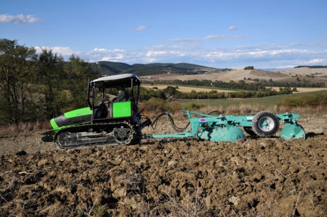 Agroclimber 410 SIX is a state of the art crawler for the open field, with compact dimensions (1.8 m in width), go-anywhere capability and a powerful 110 HP engine specifically developed to deliver high performance. This machine incorporates all the latest innovative engineering solutions in the crawler segment, and is incomparably easy to use and comfortable even in the challenging conditions typical of hilly and mountainous terrain. Unique to the 410 SIX is an undercarriage with six bottom rollers per side, for ideal weight distribution of the tractor, and flanged long-life track chains. |