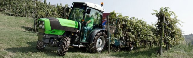 DEUTZ-FAHR has always been one of the leading European manufacturers of specialised tractors. A particularly vivid example of how these decades of expertise have been put to use is the evolution of the Agroplus, a range of three agile, versatile tractors (V/S/F), with a slimline design conceived to cater for all the needs of the vineyard and fruit orchard. Low and narrow (1.16 m), the go-anywhere Agroplus V is the most compact model of the three; the Agroplus F is the widest (1.43 m), to offer maximum grip together with the benefits of limited size; bristling with outstanding high-tech features, the Agroplus S is the most versatile (1.26 m wide). |