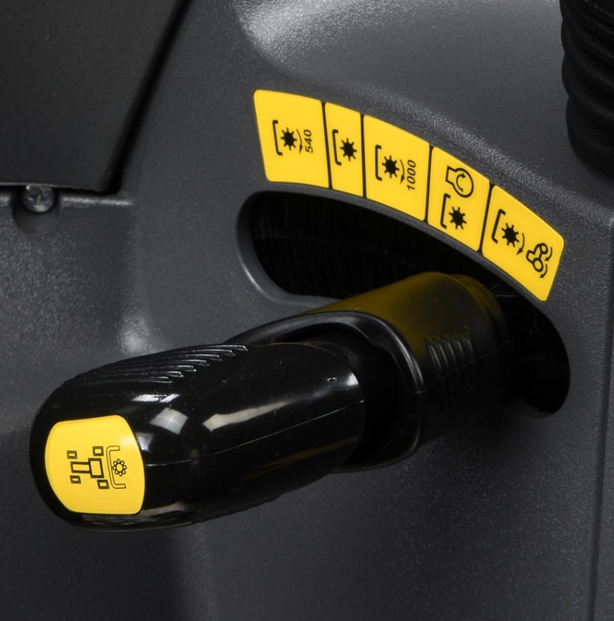 Mechanically-engaged rear 540 PTO, with an optional electrohydraulic-engaged front 1000 PTO
