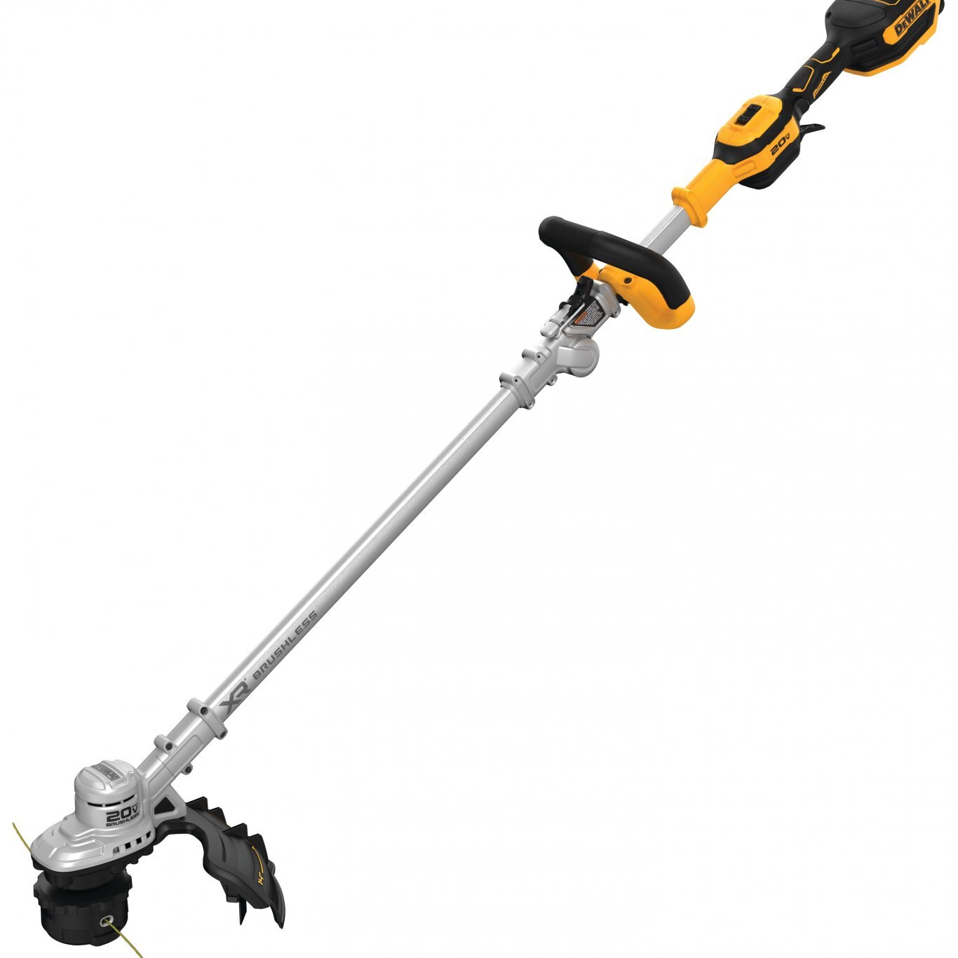 20V MAX* 14 in. Folding String Trimmer This 20V MAX* 14 in. String Trimmer features an innovative folding hinge mechanism that reduces the length by 40%** for accessible storage and quick portability. The QuickLoad™ Spool allows for fast and easy line replacement of the DEWALT 0.080 in. line. The 14 in. swath gives a large cutting radius for knocking down wide sections of overgrowth in one pass. The variable speed trigger offers precise power control, as well as performance and runtime management with the Hi/Lo speed control switch.