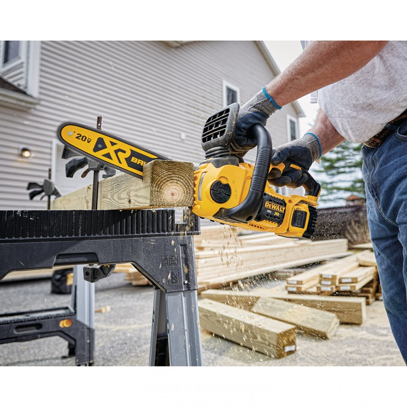 The 20V MAX* XR® Compact 12 in. Cordless Chainsaw works with your existing 20V MAX* batteries. Gas-free operation eliminates the cold starts, fumes, carburetor issues, and maintenance involved with gas-powered chainsaws. This battery powered chainsaw is built to work hard. Use it for tough construction and outdoor jobs like cutting beams, demolition work, and managing tree limbs. The lightweight design maximizes user control. Brushless motor technology delivers extreme runtime and long motor life.