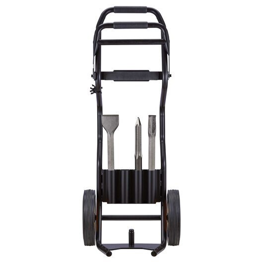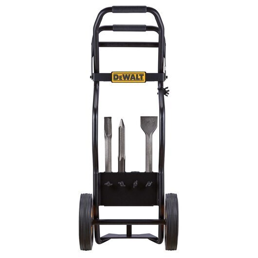 This newly-enhanced, mobile Hex Hammer Truck is an ergonomic and lightweight hammer cart for our 1-1/8 in. Hex Pavement Breakers (D25980 and D25960). The new design secures breakers with a heavy-duty steel gate, and can safely store vertically or horizontally with the breaker attached. It features large, jobsite-grade rubber wheels for transport, and comes with a self-sharpening bull point chisel, self-sharpening cold chisel, and scaling chisel.