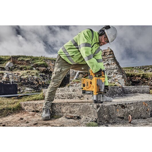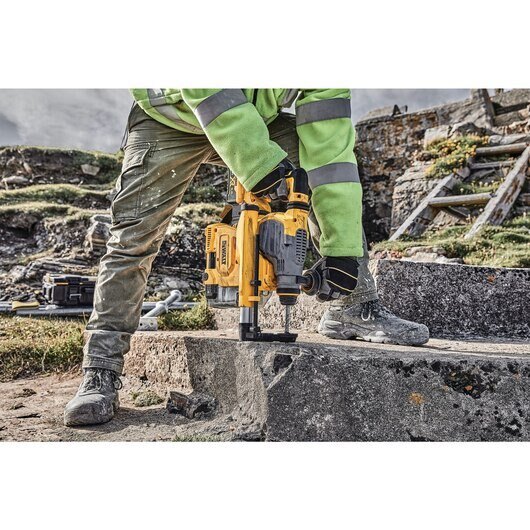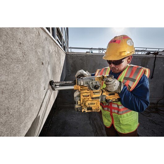 The 20V MAX* XR® Brushless 1-1/8" Rotary Hammer is a high-performance drill powered by a DEWALT brushless motor and durable German engineered mechanism, delivering 3.5 Joules of impact energy. The balanced design makes this tool ideal for large diamter hole drilling to install sleeve, stud/wedge, and screw anchors. It is part of the PERFORM & PROTECT™ product line with the SHOCKS ACTIVE VIBRATION CONTROL® System and Anti-Rotation E-CLUTCH® System. This drill becomes OSHA Table 1 Compliant when used with the DWH304DH On Board Extractor.