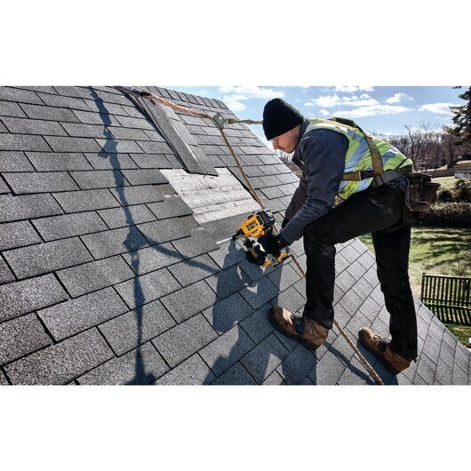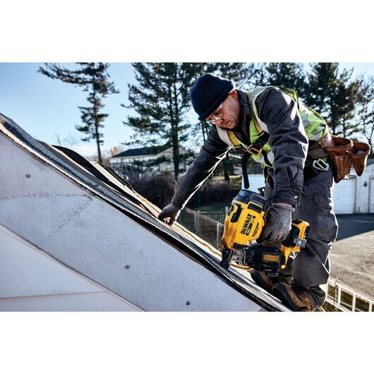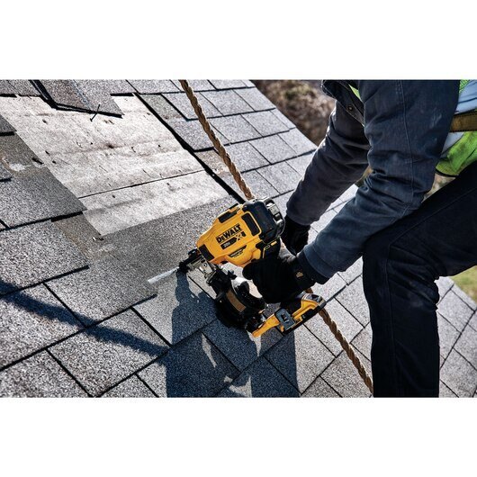 This 20V MAX* 15° Cordless Coil Roofing Nailer delivers cordless convenience ideal for service repairs and small jobs. There are absolutely no hoses, compressors, or gas cartridges required. It"s 100% battery-powered so the pro can show up and get to work right away. The 20V MAX* 15° Coil Roofing Nailer can drive the full range of roofing fasteners from 3/4 in. to 1-3/4 in. Get the job done quickly and efficiently with bump actuation mode and tool-free depth adjustment that provides precise nail placement.