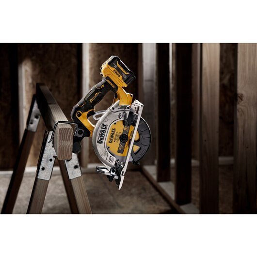 Get more done throughout your work day with the XTREME™ 12V MAX* 5-3/8 in. Brushless Cordless Circular Saw. Built for consistent, professional results, this Circular Saw helps you execute fast, accurate cuts in a wide range of materials. Move about your work space freely as you maneuver this compact tool to cut at the angle you need with its tool-free, adjustable bevel capacity. Get enhanced visibility in low-light spaces with the integrated LED and store when the project is complete using the rafter hook. Minimize accidental cuts when using the XTREME™ 12V MAX* 5-3/8 in. Brushless Cordless Circular Saw with its automatic stop function that halts the blade when the trigger is released. |