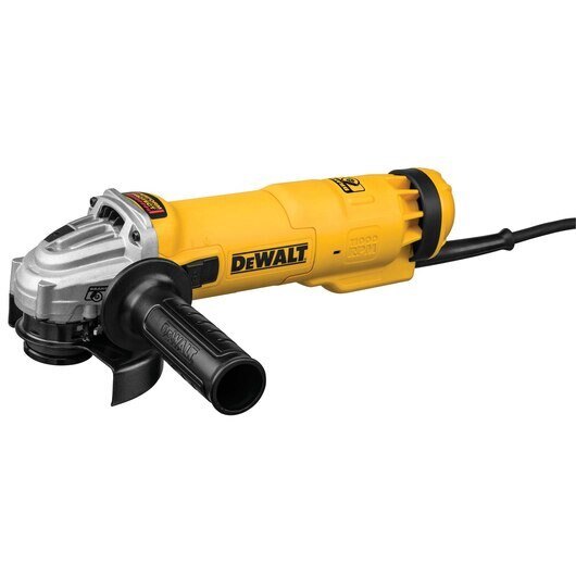 The DWE4222 4.5" Small Angle Paddle Switch Grinder with Brake slows wheel 50% faster once trigger is released as compared to the DWE402 with DW4514 Wheel. The E-Clutch™ feature activates in less than a tenth of a second when a wheel pinch/stall event is detected. Includes One-Touch™ Guard and Dust Ejection System.