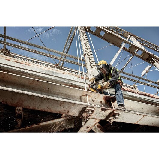 The FLEXVOLT 4-1/2 in.-6 in. (115 mm.-150 mm.) Grinder with Kickback Brake is maximized for power and durability. It delivers 13 amp power as compared to the D28144N with the portability and convenience of cordless through revolutionary FLEXVOLT technology by DEWALT. Purchase battery separately.