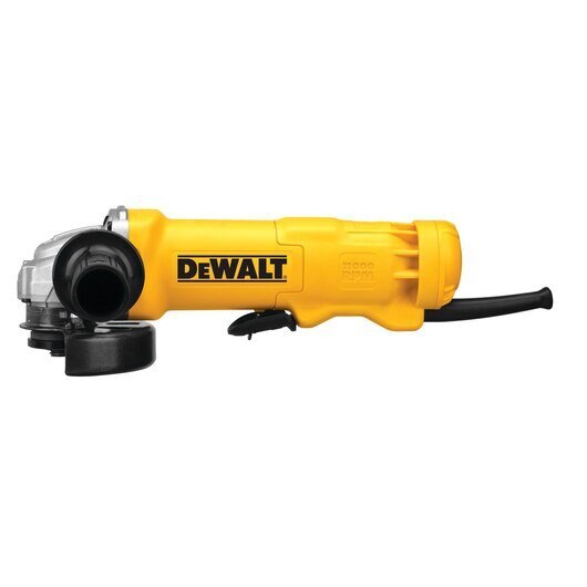 The DWE402K 4-1/2" (115mm) Small Angle Grinder Kit features three powerful systems for maximizing performance such as the Dust Ejection System for preventing damaging dust from entering the tool, One-Touch Guard™ for 360-degree rotation, and Quick-Change™ Wheel Release for easy wheel removal.