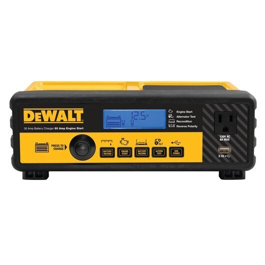The 80 Amp Bench Battery Charger packs an entire garage full of useful gear into a single bench battery charger. This charger features fully automatic 12V charging for marine and automotive batteries, immediately determining whether your battery needs a rapid bulk charge or a slow trickle charge to keep it topped off. It's also got a patented 80 Amp Engine start to help get your vehicle back on the road fast. An alternator test function is also included to perform crucial diagnostics and a voltage meter to keep an eye on charging.