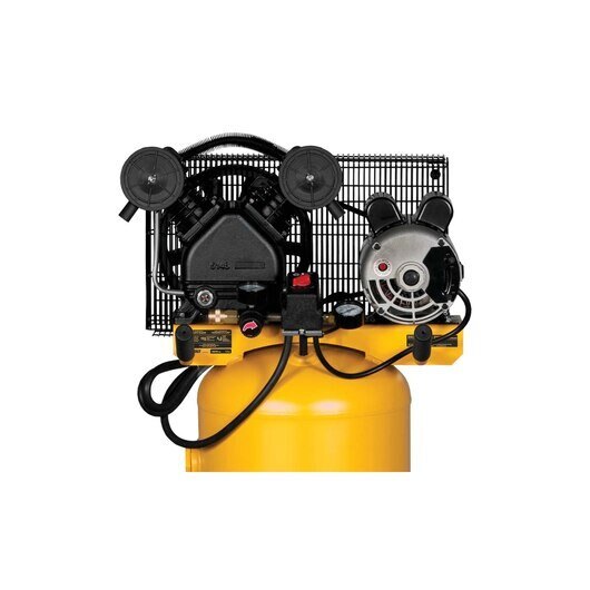 The DEWALT 20 Gal. Air Compressor is jobsite tough and built for the professional. It features automotive style ball bearings, durable stainless steel reed valves, oil level sight glass, easily accessible oil fill and a cast iron balanced flywheel for easy maintenance, durability and convenience. This single-stage, oil lubricated compressor offers a Twin-V cast iron pump with one piece cast iron crank case and thermally stable cast iron cylinder body. It has a heavy-duty 1.6 HP, 120/240-Volt induction motor, as well as a full-size metal belt guard for added motor protection and durability. For portability, you can wheel it wherever it is needed. DEWALT offers a full line of both electric and gas powered professional compressors. DEWALT compressors include lightweight, portable contractor units, high volume, high capacity wheeled contractor units and high capacity industrial compressors to accommodate the highest demand.