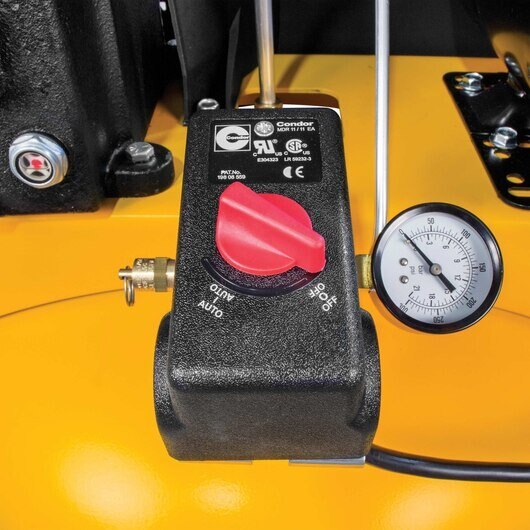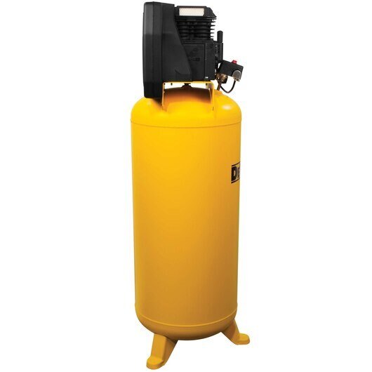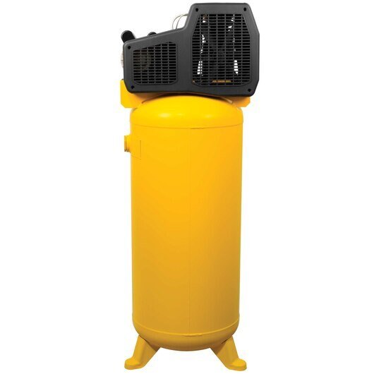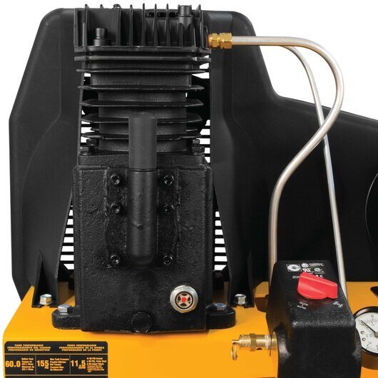 DEWALT's 60 Gal. Air Compressor features a cast iron, twin-cylinder, oil-lubricated pump. This includes a 1-piece cast iron crankcase, thermally stable cast iron cylinder body, aluminum head and valve plate, automotive style ball bearings, durable Swedish stainless steel reed valves, oil level sight glass, easily accessible oil fill and a 12 in. cast iron balanced flywheel. The unit operates with a heavy-duty, 240-Volt induction motor for maximum performance and efficiency, with 155 PSI max pressure for optimum tool performance.