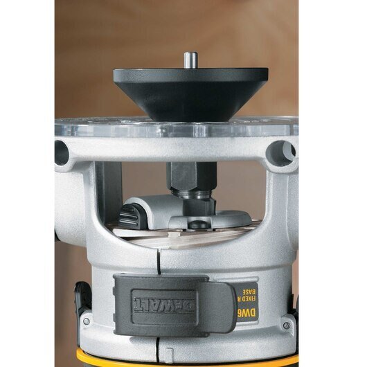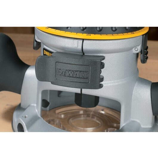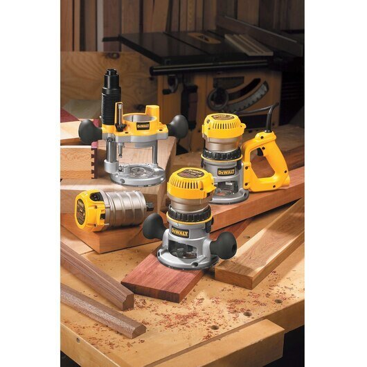 The DW618 2-1/4 HP EVS Fixed Base Router with Soft Start has a powerful motor for routing through tough hardwood at the user's desired speed. Features precise depth adjustments and fast, easy motor pack removal for bit and base changes.