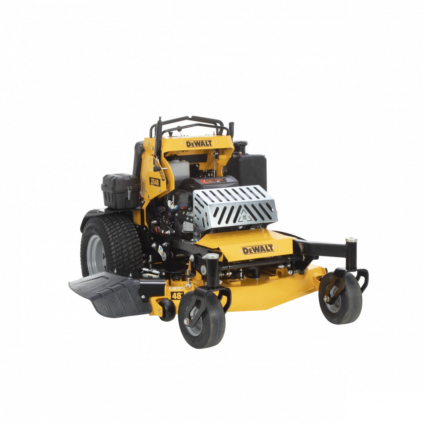 Ideal for demanding landscape work, the DEWALT 48 in. Hydrostatic Professional Mower features stand-on functionality with large platform for quick on-and-off so you can remove mowing obstructions with minimal job interruption. Confidently tackle a variety of jobs with its durable build and rear and front wheels. The mower is built for heavy-duty use with a strong frame matched with a premium pump and high-performance wheel motor transmission. For all-day comfort, the large hip pad adjusts and matches the operator"s height. Designed for productivity and jobsite efficiency, this versatile mower has smooth controls and fast response times from the transmission for ease of operation.