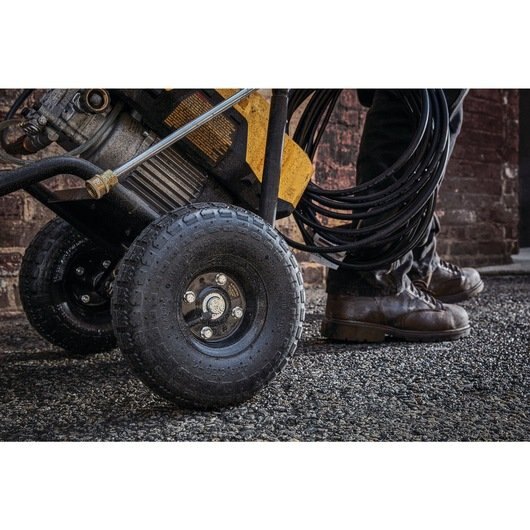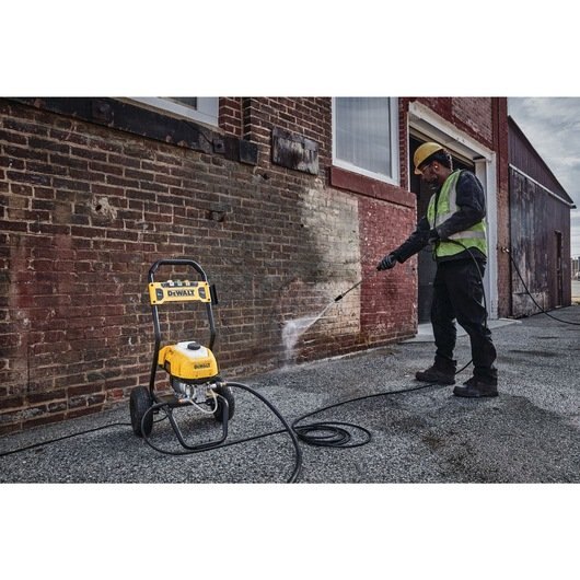 You can rely on the durable, mobile, and powerful DEWALT 2400 psi Pressure Washer, delivering enough power to handle your outdoor cleaning tasks. Be prepared to tackle just about any job or wash your vehicle with the accessories you need. This Cold-Water Pressure Washer comes equipped with five nozzles, including a Turbo nozzle and built-in storage for organization. Built to transport over rugged terrain, the pressure washer features premium 10 in. pneumatic wheels so you can take it to the jobsite. The 2400 PSI Cold-Water Pressure Washer is backed by a 3 Year Limited Warranty.
