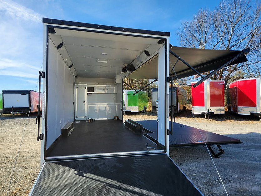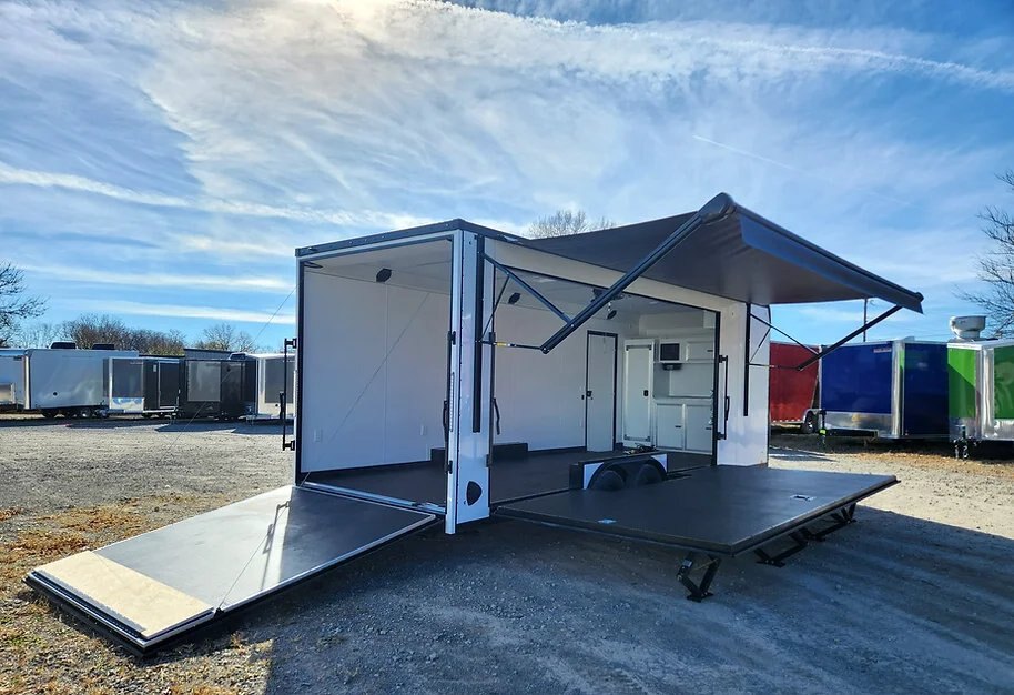 Featuring Power Awning and Stage Door with Scissor Stabilizer Jacks.