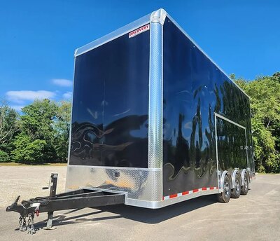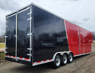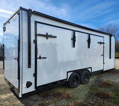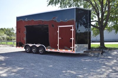 Discovery Stacker - Steel With V-Nose Front Option and Triple Axles. Discovery Stacker - Steel Featuring Escape Door and Triple Axles. ...