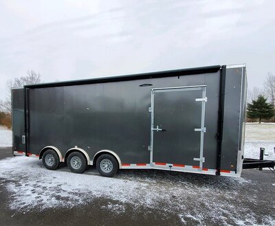 Rover SE In Metallic Charcoal with Sidewall Vents and Optional Black-Out Package. Rover SE With Recessed Exterior Lights, Concession Window and Black-Out Package &n...