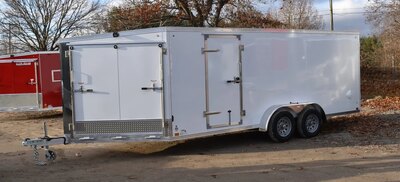 Discovery Aluminum Gooseneck Featuring White Poly-Cor Exterior with Brite Corners and Top Wrap Discovery Aluminum Gooseneck Interior Options - D...