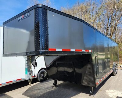 Discovery Steel Gooseneck In Metallic Charcoal With Black-Out Package. Discovery Steel Gooseneck Featuring Triple Spread Axles and Black-Out Pac...