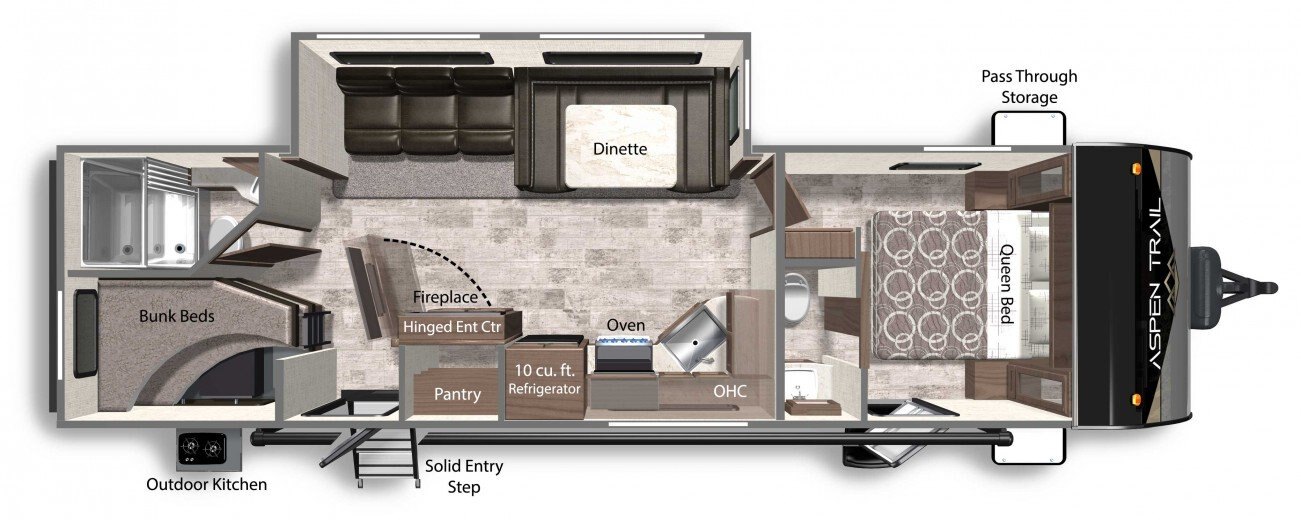 Aspen Trail 3020BHSAspen Trail has the most dynamic range of floorplan options to fit any camping style. With more standard features than its competitors and a focus on quality, value, and design, Aspen Trail delivers the best RV in its class. |