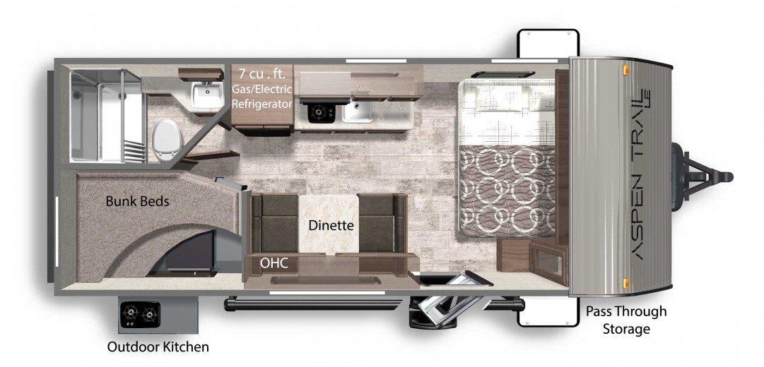 Aspen Trail LE 1950BHThe Aspen Trail LE offers many of the same comforts of the conventional Aspen Trail models but in a smaller, lighter-weight package. |