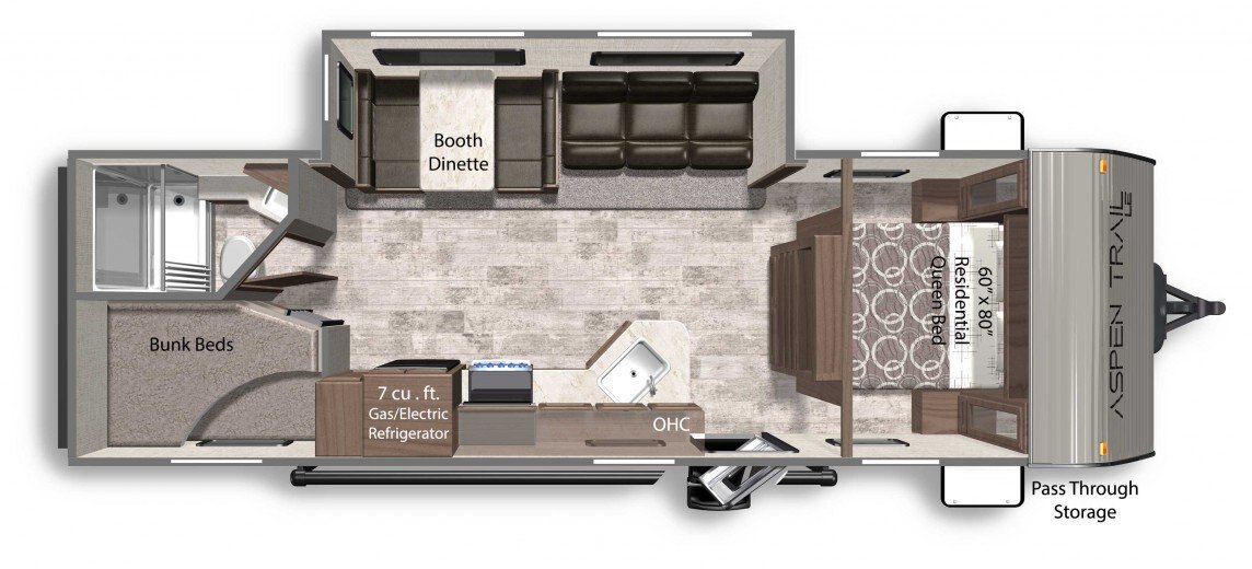 Aspen Trail LE 26BHWEThe Aspen Trail LE offers many of the same comforts of the conventional Aspen Trail models but in a smaller, lighter-weight package. |