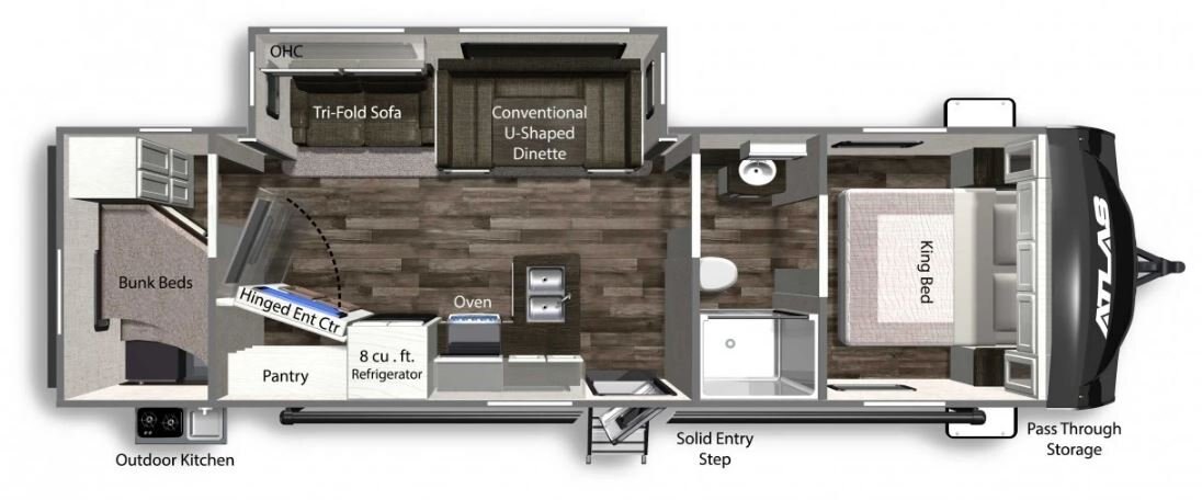 With the amount of features you will find in the Atlas Travel Trailer, you'll have everything you need to explore the open road that awaits.