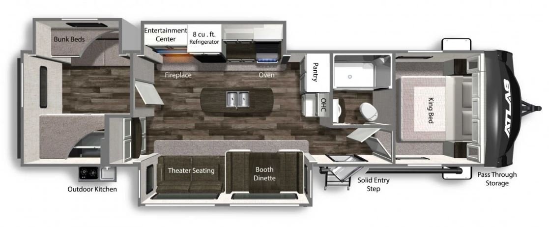 With the amount of features you will find in the Atlas Travel Trailer, you'll have everything you need to explore the open road that awaits.