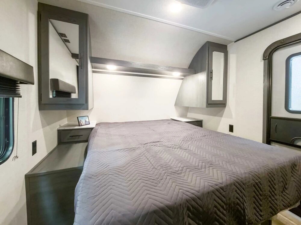 All the thrill of getting away combined with premium space and traditional comforts. That’s what a true residential Queen-size bed brings to adventurers in our Aspen Trail travel trailers.