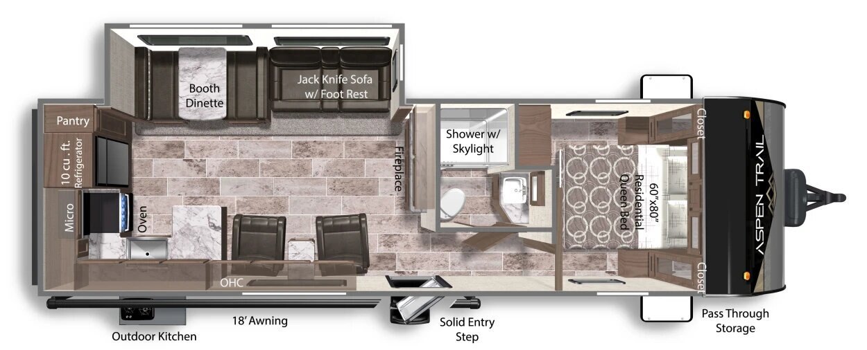 Aspen Trail has the most dynamic range of floorplan options to fit any camping style. With more standard features than its competitors and a focus on quality, value, and design, Aspen Trail delivers the best RV in its class.