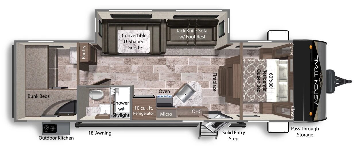 Aspen Trail has the most dynamic range of floorplan options to fit any camping style. With more standard features than its competitors and a focus on quality, value, and design, Aspen Trail delivers the best RV in its class.