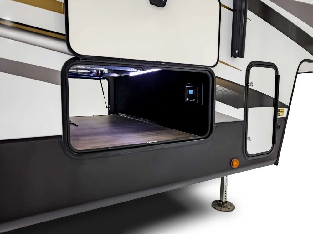 With the automatic leveling system, you don’t have to worry about finding that perfect patch of ground when it’s time to park your RV. With the push of a button, the system will automatically adjust to uneven terrain, so you can stop fussing with individual jacks and wobbly camping trips.