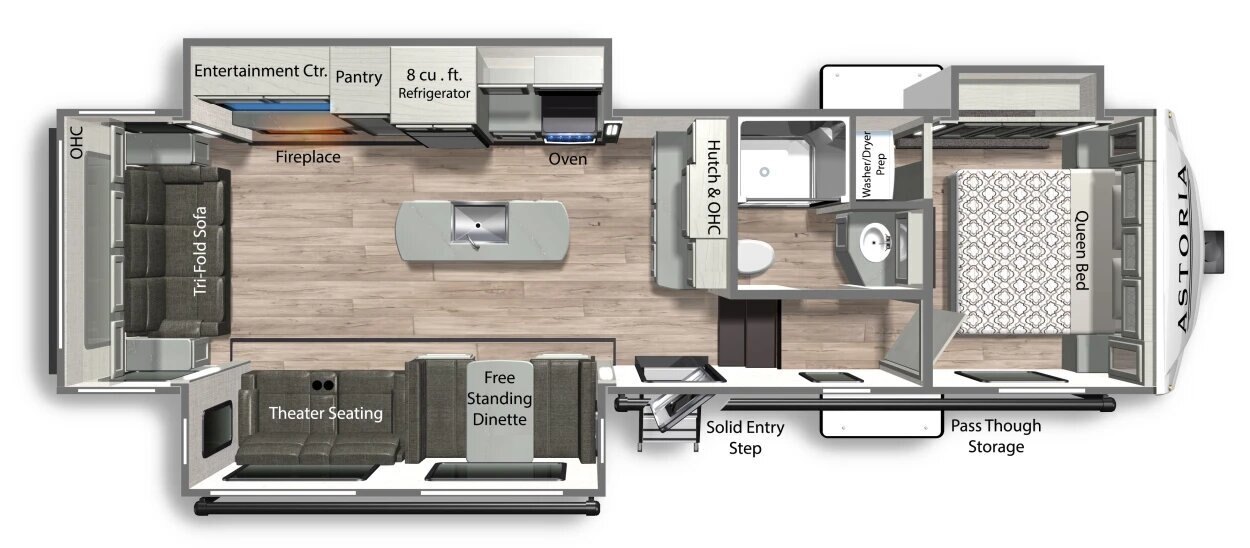 The Astoria Fifth Wheel delivers a long list of standard features to elevate your RV travel, including the tallest bedroom height in the mid-pro fifth wheel segment. With more headroom to get ready and decompress, the Astoria is prepared to expand your exploration in more ways than one.