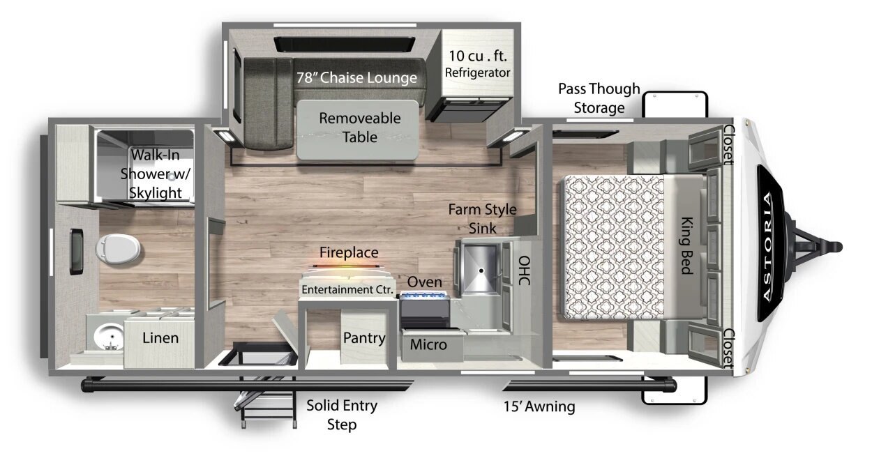 Whether your perfect getaway is a beach, mountains or big city, feel right at home in your Astoria Travel Trailer offering floor plans to fit your unique style.