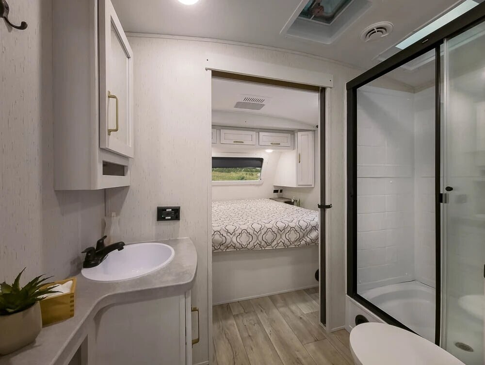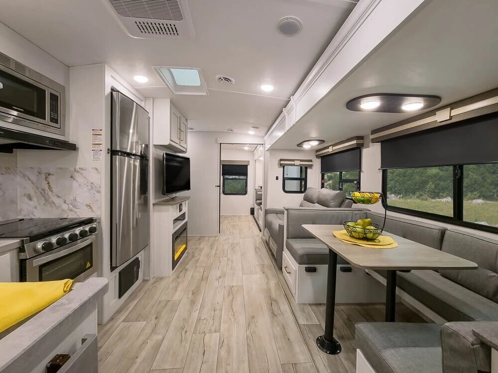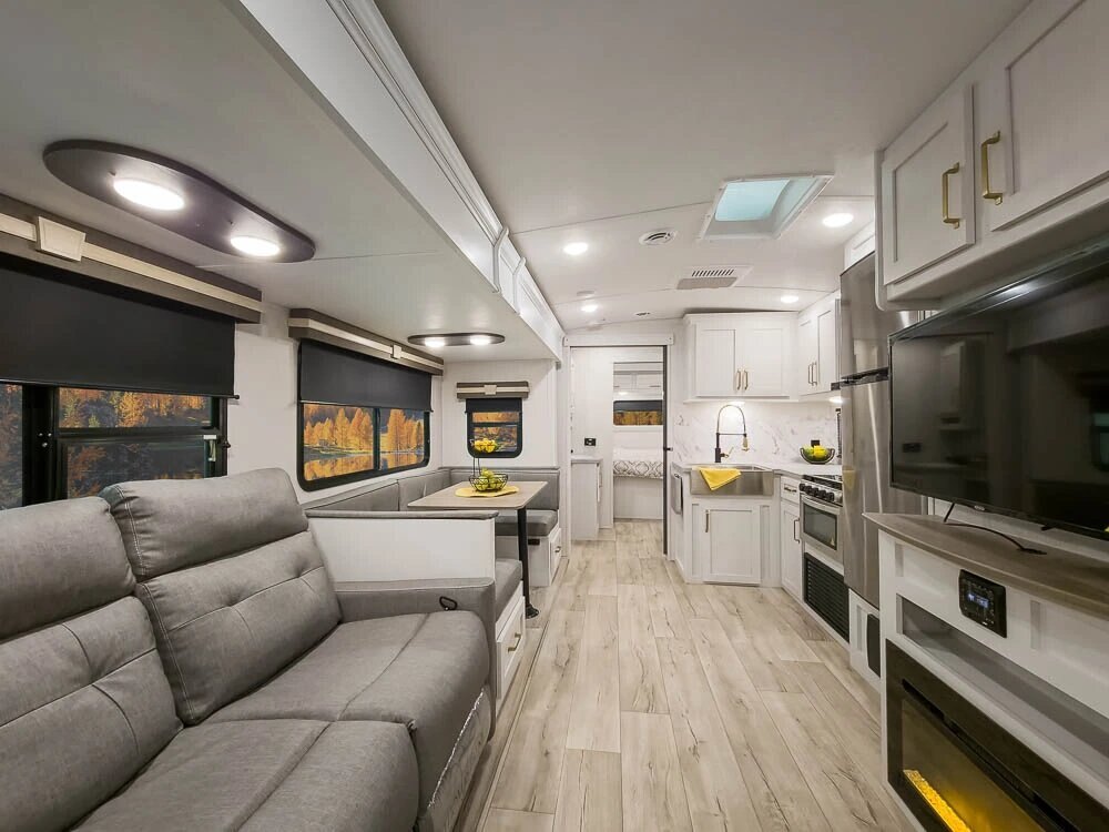 The enclosed and force-heated underbelly that delivers cold-weather campers with two layers of insulation and enclosed gate valves. With this kind of protection for your RVs vital components, your vacation plans don’t have to be confined to summer and spring.
