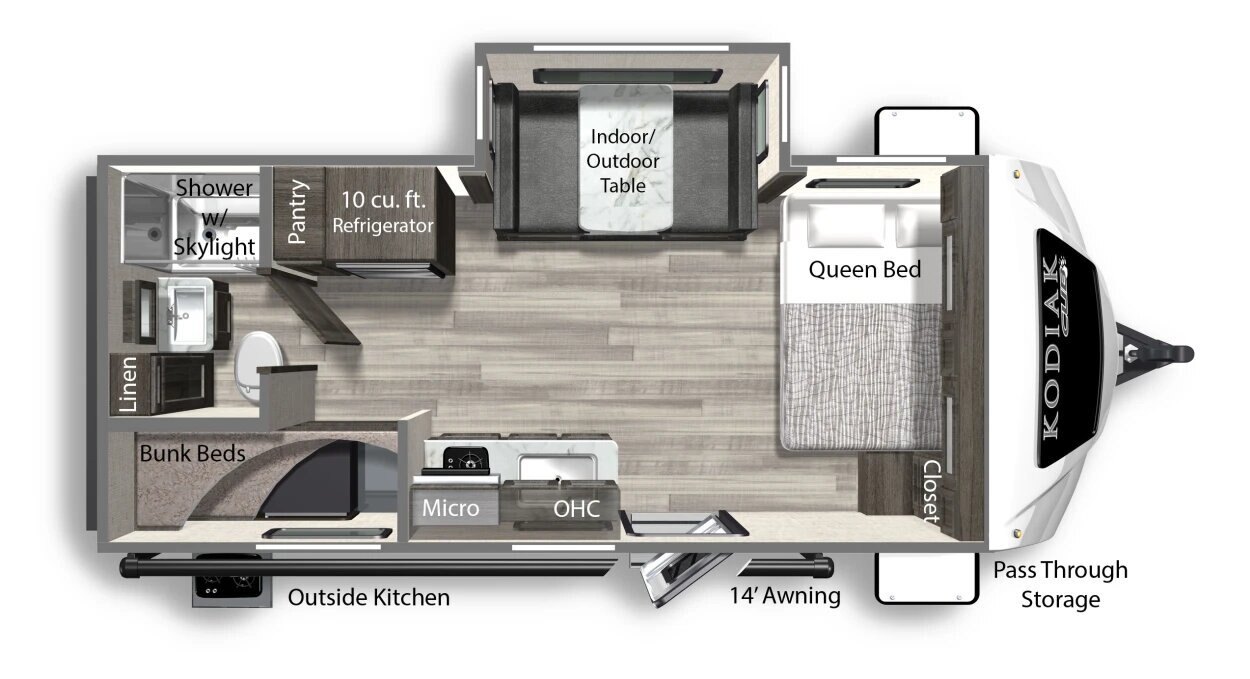 Take the scenic route with the Kodiak lineup. The leader in lightweight technology with its aluminum super-structure design, be comfortable wherever you roam. With units light enough to be towed by most SUV’s, minivans, crossovers, and light trucks, we’re sure to have the model that best fits your camping needs.