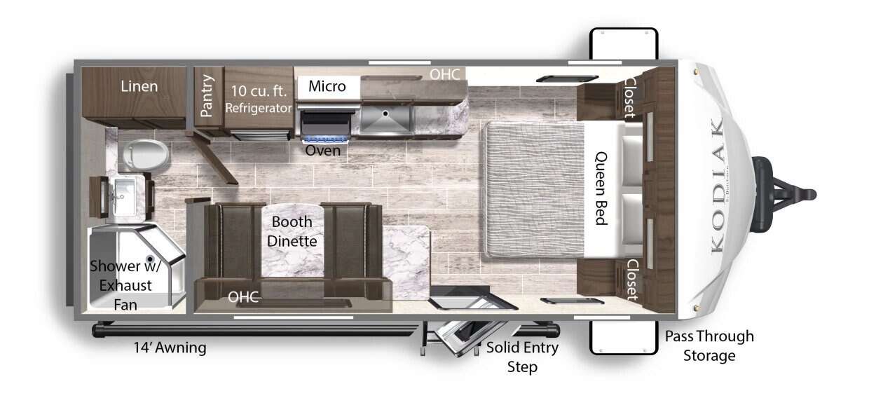 Take the scenic route with the Kodiak lineup. The leader in lightweight technology with its aluminum super-structure design, be comfortable wherever you roam. With units light enough to be towed by most SUV’s, minivans, crossovers, and light trucks, we’re sure to have the model that best fits your camping needs.