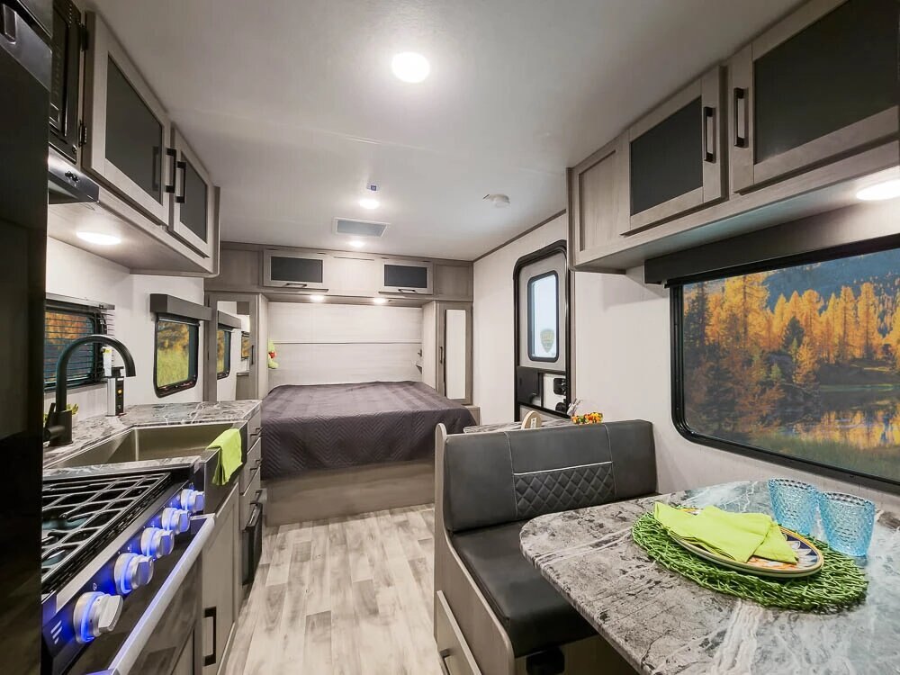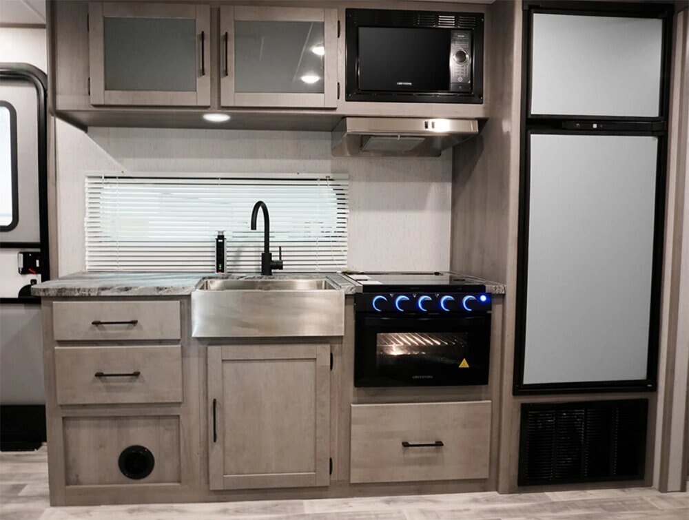 All the thrill of getting away combined with premium space and traditional comforts. That’s what a Queen-size bed brings to adventurers in every floorplan of our Kodiak Ultra-Lite travel trailers.
