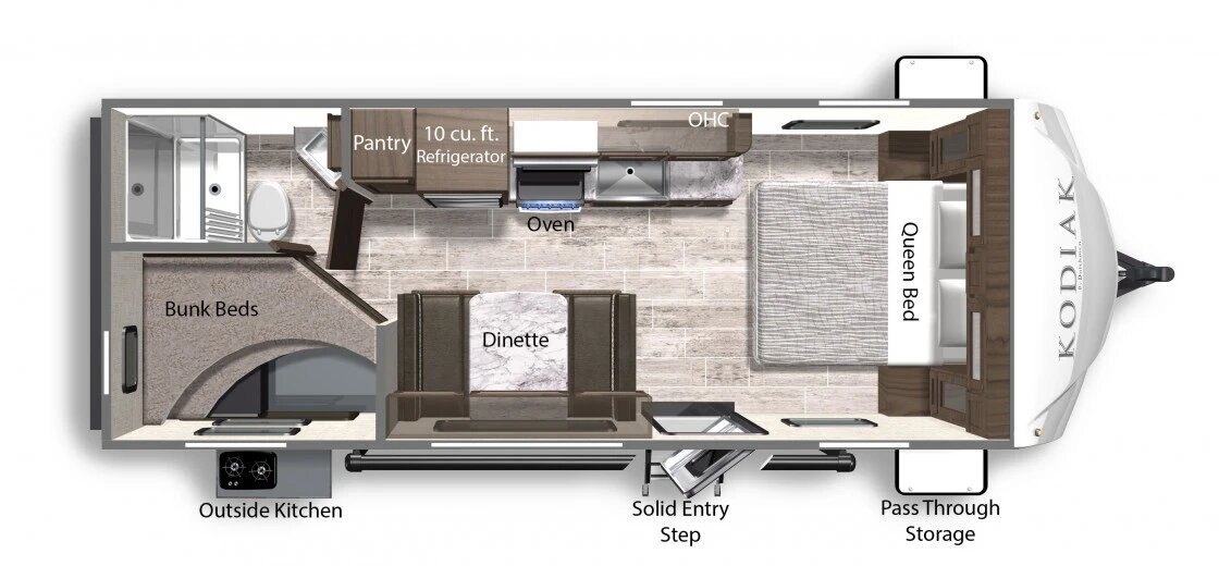Take the scenic route with the Kodiak lineup. The leader in lightweight technology with its aluminum super-structure design, be comfortable wherever you roam. With units light enough to be towed by most SUV’s, minivans, crossovers, and light trucks, we’re sure to have the model that best fits your camping needs.