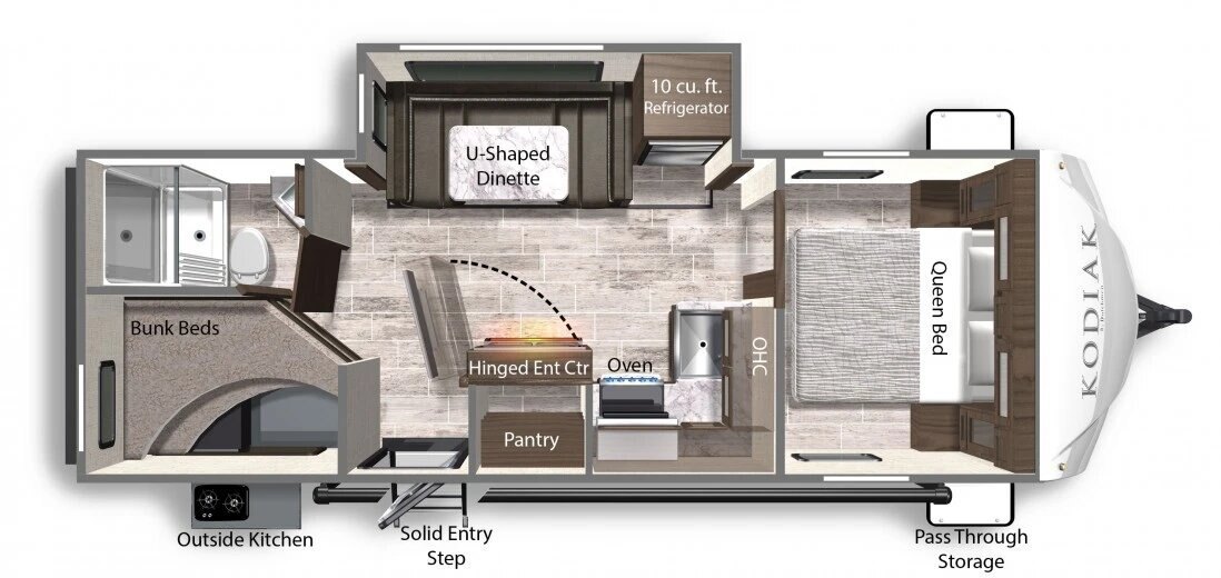 Take the scenic route with the Kodiak lineup. The leader in lightweight technology with its aluminum super-structure design, be comfortable wherever you roam. With units light enough to be towed by most SUV’s, minivans, crossovers, and light trucks, we’re sure to have the model that best fits your camping needs.