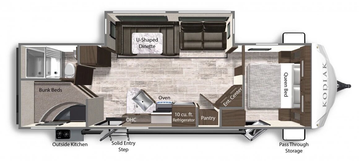Take the scenic route with the Kodiak lineup. The leader in lightweight technology with its aluminum super-structure design, be comfortable wherever you roam. With units light enough to be towed by most SUV’s, minivans, crossovers, and light trucks, we’re sure to have the model that best fits your camping needs.