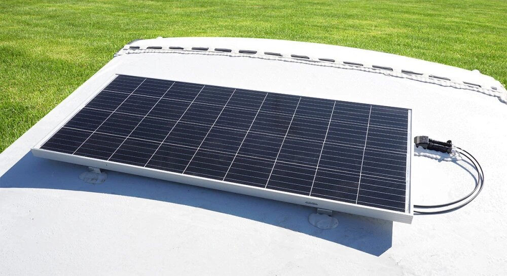 Solar panel power provides clean, renewable power, and independence from the grid. (Picture shown with Optional Factory Installed Spirit III Solar Package includes 200W Solar Panel, 1200W Inverter, 30 Amp Charge Controller, and Side Port )