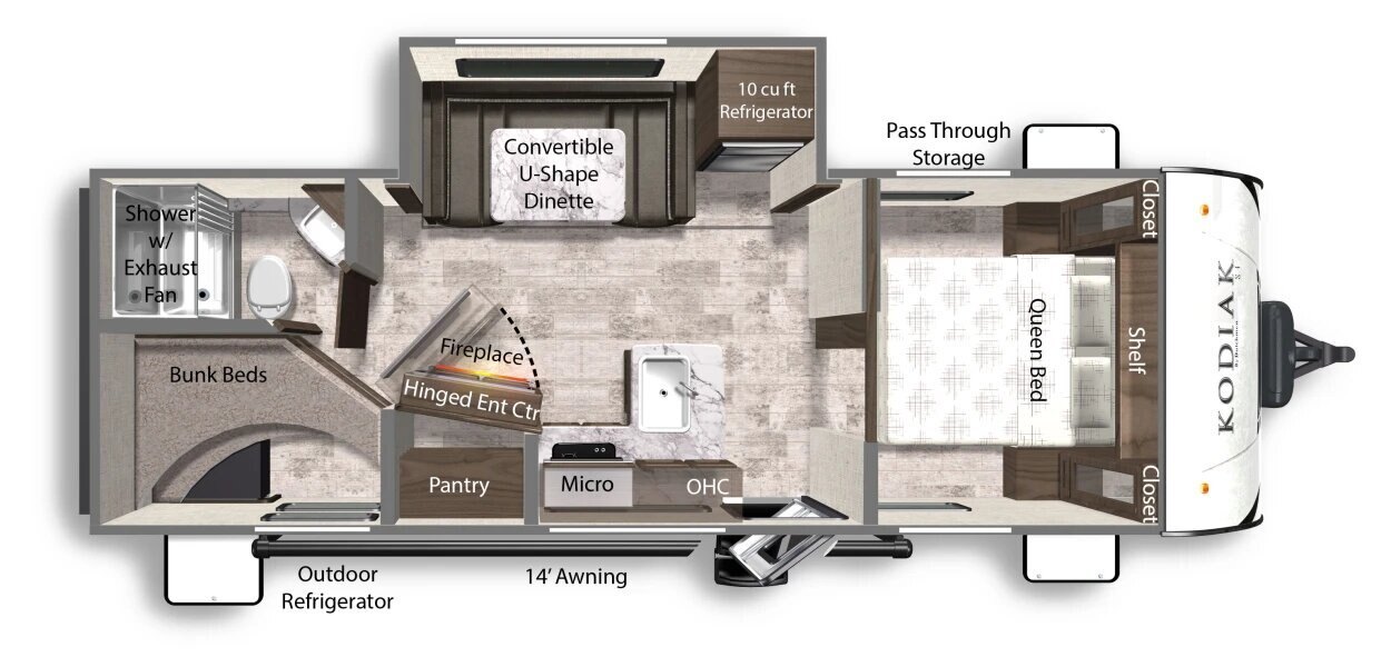 Take the scenic route with the Kodiak lineup. The leader in lightweight technology with its aluminum super-structure design, be comfortable wherever you roam. With units light enough to be towed by most SUV’s, minivans, crossovers, and light trucks, we’re sure to have the model that best fits your camping needs.