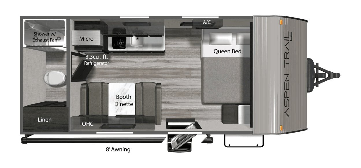 Aspen Trail Mini is a light weight travel trailer engineered to accommodate smaller tow vehicles. From 3,200 lbs. and up, these floorplans maximize space and comfort in a lightweight package.