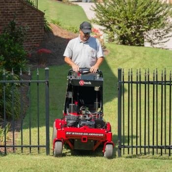 Productivity is the key to profitability for your business. And nothing beats the Exmark Stand-On Aerators for productivity. With speeds up to 7 mph on the 30" Aerator, you can aerate more than 1.8 acres per hour. With speeds up to 6.8 mph on the new 24" Aerator, you can aerate nearly 1.4 acres per hour. And the two center tine sets are free-turning, so it’s easy to aerate around trees and flower beds. In fact, with intuitive controls similar to commercial mowers, it’s incredibly easy to operate just about anywhere. It’s easy on the operator, too, with a unique platform suspension that provides an extra-smooth ride. | ||||||||||||||||||||||||||||||||||||||||||||||||