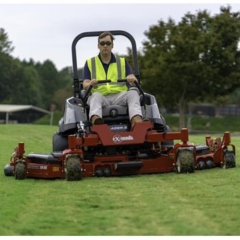 When maximum productivity, durability and cut quality are your priorities, the new Exmark Lazer Z Diesel zero-turn mowers are the right choice. They make quick work of the largest, toughest jobs and raise the bar for cut quality, operator comfort, fuel efficiency and ease of handling. When equipped with the new 144-inch UltraCut Flex Wing cutting deck, the Lazer Z Diesel can mow 11.5 acres per hour, making it the most productive mower Exmark has built. Powered by a cutting-edge Yanmar diesel engine, large drive tires allow you to reach ground speeds up to 12.5 MPH with the 96" deck. The Lazer Z Diesel is also available with 60- or 72-inch UltraCut cutting decks or the 96-inch UltraCut Flex wing deck. Delivering a high-quality cut, the flex wings on the 96-inch and 144-inch decks pivot 20-degrees up and 15-degrees down on sloping terrain. The 144-inch cutting makes the Lazer Z Diesel the largest zero-turn mower in the market.