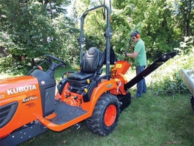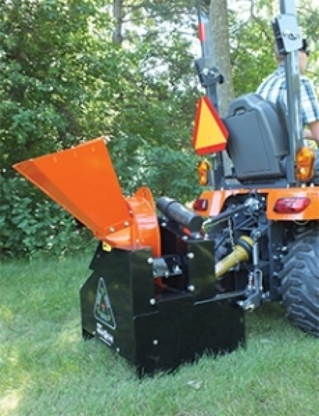 The ECHO Bear Cat CH45540 is the perfect match for your compact tractor. It's built with heavy-duty, 7-gauge steel. The 14 x 1 inch thick, 49 pound dynamically-balanced rotor utilizes two reversible heat-treated chipper blades and is driven by a double-banded belt for maximum power transfer. The cantilever mounted rotor design helps reduce wrapping while chipping wet, stringy wood types.